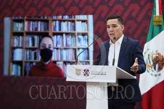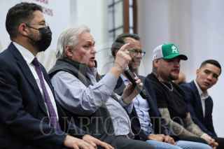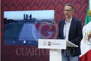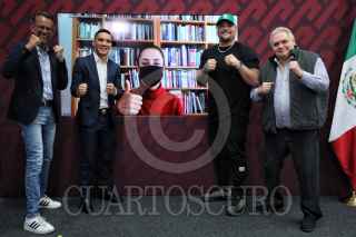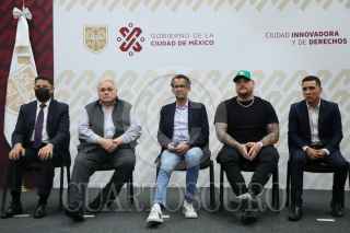CIUDAD DE MÉXICO, 17JUNIO2022.- Conferencia de prensa encabezada por: Javier Hidalgo, titular del Instituto del Deporte de la Ciudad de México; en compañía del boxeador Oscar Valdez, el empresario Carlos Bremer, el boxeador estadounidense de ascendencia mexicana Andy Ruiz, y el secretario de gobierno Martí Batres para dar detalles sobre la clase masiva de box, el día de mañana, que buscará romper un récord Guinness en la plancha del Zócalo. FOTO: GOBIERNO CDMX/CUARTOSCURO.COM