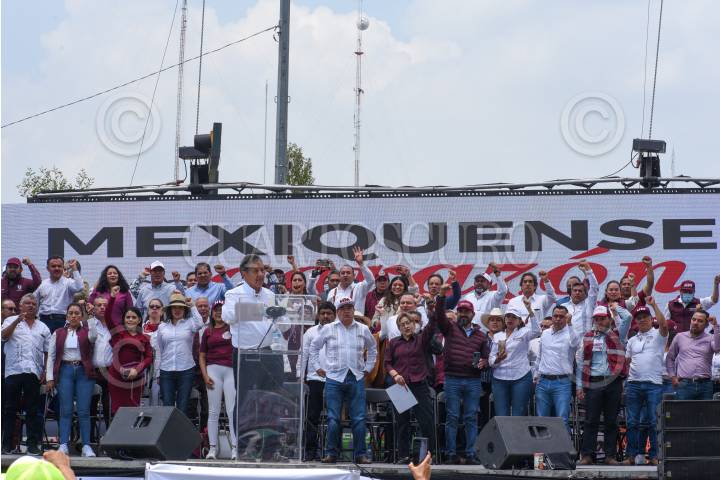 TOLUCA, ESTADO DE MÉXICO, 18JUNIO2022.- Acompañado por alcaldes, diputados locales y federales y Martha Guerrero Delegada de la 4T en el Estado de México, el Senador Higinio Martínez encabezó la movilización “Mexiquenses de Corazon” en Toluca, quien aspira a ser el candidato de MORENA para la Gubernatura del Estado de México, la asamblea se realizó en la avenida Lerdo de Tejada frente a Palacio de Gobierno, en donde también celebró su cumpleaños mordiendo un pastel. Durante la asamblea advirtieron al gobierno del PRI que vayan preparando las maletas por que pronto se irán. FOTO: CRISANTA ESPINOSA AGUILAR /CUARTOSCURO.COM