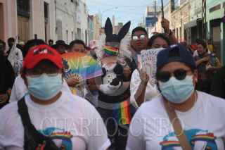 MÉRIDA, YUCATÁN, 18JUNIO2022.- Cientos de personas acudieron a la marcha de la Diversidad Sexual o Marcha del Orgullo LGBTTTIQA+ en Mérida. El recorrido partió del Paseo de Montejo hasta llegar a la Plaza Grande del centro histórico de esta ciudad en dónde se pronunciaron a favor de la inclusión, el respeto y la diversidad sexual. FOTO: MARTIN ZETINA/CUARTOSCURO.COM