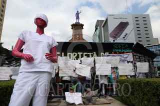 CIUDAD DE MÉXICO, 19JUNIO2022. Protesta pacífica de los familiares de la enfermera Daniela Abigail de la Cruz Suárez que presuntamente murió por una negligencia médica cometida en el Hospital 1ero de Octubre en la glorieta a la Joven de Amajac. FOTO: EDGAR NEGRETE/CUARTOSCURO.COM