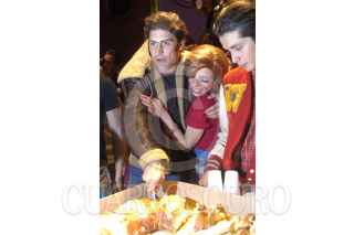 MÉXICO, D.F. 07ENERO2007.- Alex Sirvent del musical Vaselina partió la rosca de reyes junto con el elenco de la ñuesta en escena. FOTO: IVÁN STEPHENS/CUARTOSCURO.COM