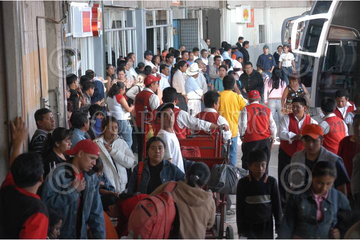 MÉXICO D.F. 07ENERO2007.- Afluencia de paseantes en los pasillos de llegada al termino de la temporada de vacaciones decembrinas, esto en la terminal de autobuses de TAPO. FOTO: GUILLERMO PEREA /CUARTOSCURO.COM