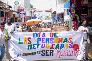 TAPACHULA, CHIAPAS, 20JUNIO2022.- Diferentes organizaciones pro-migrantes marcharon por las principales calles de Tapachula para conmemorar el Día Mundial del Refugiado y exigieron respeto a sus derechos humanos. Señalaron que los migrantes que arriban deben ser considerados refugiados ya que huyen de sus países por motivos de violencia, y que en lugar de encontrar apoyo por su condición las autoridades como el Instituto Nacional de Migración y otras dependencias los ignoran. FOTO: DAMIÁN SÁNCHEZ/CUARTOSCURO.COM