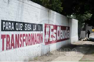 CIUDAD DE MÉXICO, 20JUNIO2022.- El grupo parlamentario del PAN en el congreso capitalino emitió una denuncia ante las autoridades electorales en contra de la jefa de gobierno de la Ciudad de México, Claudia Sheinbaum, por realizar campaña política anticipada al registrarse bardas pintadas en la Central de Abasto con la leyenda "Pará que Continúe la Transformación #EsClaudia". FOTO: DANIEL AUGUSTO /CUARTOSCURO.COM