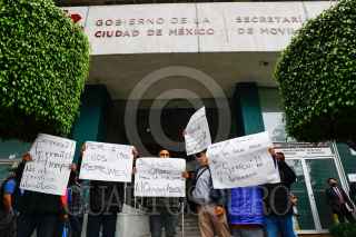 CIUDAD DE MÉXICO, 21JUNIO2022.- Integrantes de la ruta 57 de la alcaldía Álvaro Obregón, encabezados por se manifestaron en las inmediaciones de la Secretaría de Movilidad de la Ciudad de México (Semovi) para exigir que no haya abusos de autoridad en los operativos que Instituto de Verificación Administrativa (INVEA). FOTO: GALO CAÑAS/CUARTOSCURO.COM