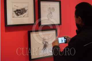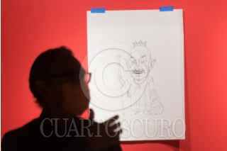 CIUDAD DE MÉXICO, 21JUNIO2022.- Rafael Barajas Durán "El Fisgón", y Alma Muñoz, viuda de Antonio Helguera, encabezaron la presentación de la exposición "Travesuras de Helguera: Un crítico de los pinos, en los pinos" la cual reunirá trabajos originales del caricaturista mexicano Antonio Helguera Martínez y será exhibida en la Cabaña 1 del Complejo Cultural Los Pinos a partir del 25 de junio. FOTO: MARIO JASSO/CUARTOSCURO.COM