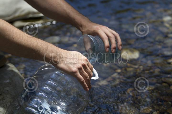 MONTERREY, NUEVO LEÓN, 21JUNIO2022.- La escasez de agua continúa en la zona metropolitana de Monterrey. Ciudadanos optan por acudir a los ríos para obtener agua, así mismo pipas de la comisión de Agua y Drenaje reparten agua potable gratuita en las colonias más afectadas. FOTO: GABRIELA PÉREZ MONTIEL / CUARTOSCURO.COM