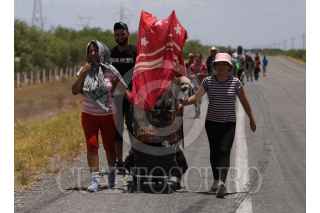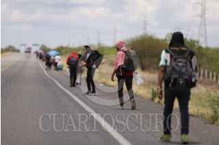 PIEDRAS NEGRAS, COAHUILA, 22JUNIO2022.- Alrededor de 800 migrantes caminan sobre la carretera Castaños-Monterrey rumbo a Piedras Negras. Los caminantes salieron el pasado lunes de Nuevo León buscando el llamado sueño americano en Estados Unidos. FOTO: ALEJANDRO RODRÍGUEZ/CUARTOSCURO.COM