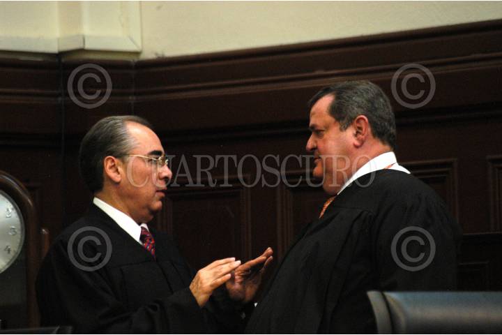 MÉXICO D.F. 08NENRO2006.- El magistrado presidente, Guillermo I. Ortiz Mayagoitia, y los magistrados José Fernando Franco González-Salas y Sergio Salvador Aguirre Anguiano durante la sesión en la suprema corte de justicia donde se voto por la controvercia del poder judicial de Talxcala. FOTO. GUILLERMO PEREA /CUARTOSCURO.COM