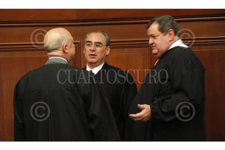 MÉXICO D.F. 08NENRO2006.- El magistrado presidente, Guillermo I. Ortiz Mayagoitia, y los magistrados José Fernando Franco González-Salas y Sergio Salvador Aguirre Anguiano durante la sesión en la suprema corte de justicia donde se voto por la controvercia del poder judicial de Talxcala. FOTO. GUILLERMO PEREA /CUARTOSCURO.COM