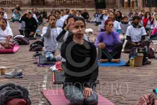 ZACATECAS, ZACATECAS, 23JUNIO2022.- Decenas de zacatecanos asistieron a la explanada de Plaza de Armas para celebrar el Dia Internacional del Yoga, donde tomaron una clase al aire libre sumándose a la iniciativa mundial. FOTO: DIANA VALDEZ/ CUARTOSCURO.COM