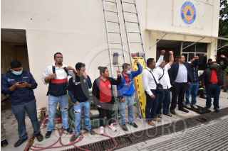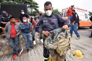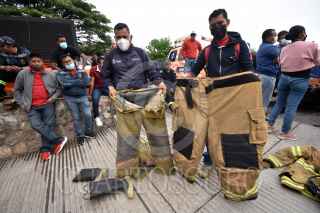 CHILPANCINGO, GUERRERO, 23JUNIO2022.- La Asociación de Bomberos Latinos de Portland, Oregón de los Estados Unidos donó a los Bomberos del estado 83 trajes con sus respectivos cascos, guantes y 20 Equipos de Respuesta Autónoma (ERA). La donación se realizó ante las precarias condiciones en las que laboran sus homólogos de Guerrero a quienes desde hace 12 años no se les compra ese tipo de equipo. FOTO: DASSAÉV TÉLLEZ /CUARTOSCURO.COM