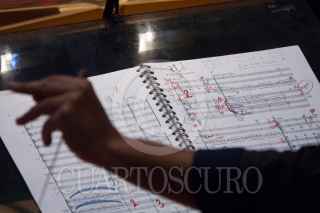 CIUDAD DE MÉXICO, 24JUNIO2022.- La versión para dos pianos, coro, ensamble de percusiones y solitas de la cantata escénica Carmina Burana, bajo la dirección del maestro Enrique Abraham Vélez Godoy, realizó un ensayo para público y medios en las inmediaciones del auditorio Blas Galindo del Centro Nacional de la Artes (CENART) al sur de la ciudad. Las dos funciones serán el próximo 25 y 26 de junio en un horario de las 18.00 horas. FOTO: GALO CAÑAS/CUARTOSCURO.COM
