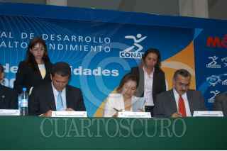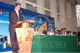 MÉXICO, D.F., 08ENERO2007.- Carlos Hermosillo, titular de Conade, durante la inauguración del ciclo escolar en el Centro Nacional de Desarrollo de Talentos y Alto Rendimiento, en donde también estuvieron la secretaria de Educación Pública, Josefina Vázquez Mota, y Felipe Muñoz, presidente del COM. FOTO: FERNANDO GARCÍA/CUARTOSCURO.COM