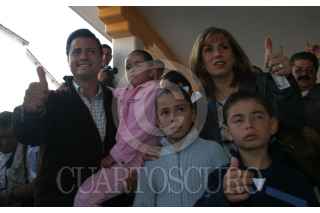 MÉXICO D.F. 11ENERO2007.- Mónica Pretelini Saenz, esposa del gobernador Enrique Peña Nieto fallecio en un hostipal capitalino. En imagen del 3de julio del 2005, Enrique Peña Nieto, candidato de la Alianza por México a la gubernatura del Estado de México, acompañado de su esposa Mónica Pretelini e hijos al termino de emitir su voto. FOTO: NELLY SALAS/CUARTOSCURO.COM