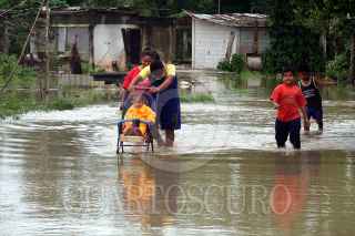 TEAPA, TABASCO; 112ENERO2007.- Los camiones batallan con la inundación, debido al desbordamiento del rio de la Sierra ocasionado por las fuertes lluvias. FOTO:MARCO POLO GUZMAN/CUARTOSCURO.COM