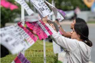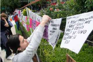 CIUDAD DE MÉXICO, 24JUNIO2022.- Un grupo de mujeres asistieron a la "Glorieta de las Mujeres que Luchan" para la recuperación del tendedero que tiene el objetivo de denunciar las violaciones de los derechos de las mujeres en el país. FOTO: MARIO JASSO/CUARTOSCURO.COM
