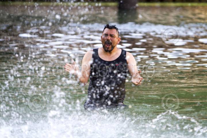 MONTERREY, NUEVO LEÓN, 24JUNIO2022.- Ante una convocatoria en redes sociales para acudir al Paseo Santa Lucía a un "Baño Masivo" por crisis de agua en la Monterrey, ciudadanos se dieron cita en el lugar y se metieron al canal destinado para paseos en botes. FOTO: GABRIELA PÉREZ MONTIEL / CUARTOSCURO.COM