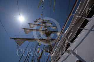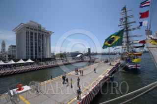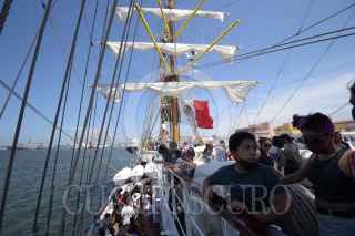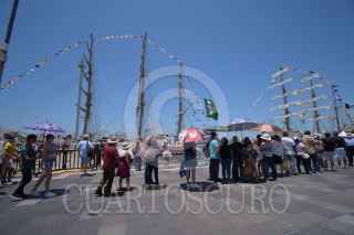 VERACRUZ, VERACRUZ, 26JUNIO2022.- Ciudadanos hacen fila para poder conocer los veleros: Buque Escuela Cuauhtémoc y “El Cisne Blanco” de Brasil, que participan en el “Festival de Velas Latinoamericanas 2022”. El Buque Mexicano Escuela Cuauhtémoc, también conocido como el “Caballero de los Mares" es uno de los más rápidos en su tipo, alcanzando los 60 km/h. FOTO: YERANIA ROLÓN/CUARTOSCURO.COM