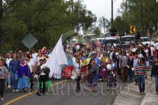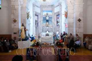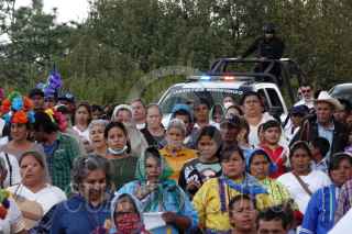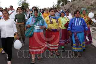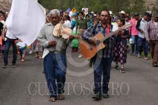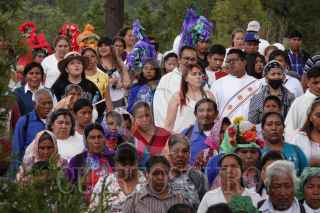 CIROCAHUI, CHIHUAHUA, 26JUNIO2022.- Una caravana de familias tarahumaras de diferentes comunidades, fieles creyentes y sacerdotes jesuitas caminaron hacia el atrio de Cerocahui en dónde esta noche serán velados los cuerpos de Joaquín César Mora Salazar, de 80 años, y Javier Campos Morales, de 79, sacerdotes jesuitas asesinados, dentro de este templo en el municipio de Urique. Mañana a medio día será el depósito de los cuerpos en el panteón de la comunidad, en dónde descansaran los sacerdotes. FOTO: GRACIELA LÓPEZ /CUARTOSCURO