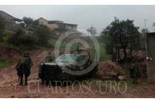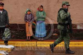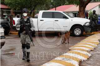 CEROCAHUI, CHIHUAHUA, 26JUNIO2022.- Elementos de la Guardia Nacional resguardan Cerocahui, luego de que le quitaran la vida a los sacerdotes jesuitas Joaquín César Mora Salazar, de 80 años, y Javier Campos Morales, de 79, dentro del templo de esta comunidad. FOTO: GRACIELA LÓPEZ /CUARTOSCURO.COM