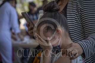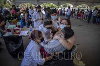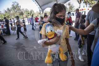 TIJUANA, BAJA CALIFORNIA, 27JUNIO2022.-Las niñas y niños bajacalifornianos de 5 a 11 años de edad serán vacunados contra el COVID-19, confirmaron autoridades estatales, de acuerdo a los lineamientos federales anunciados este martes. Este día decenas de padres de familia llevaron a sus hijos al punto de vacunación ubicado en el Parque Morelos. FOTO: OMAR MARTÍNEZ /CUARTOSCURO.COM
