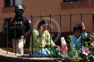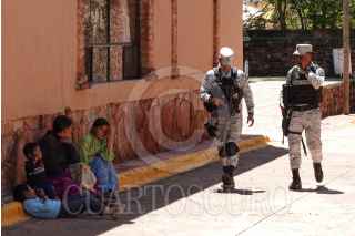 CEROCAHUI, CHIHUAHUA, 27JUNIO2022.- Elementos de la Guardia Nacional resguardaron el templo de Cerocahui, durante el entierro de los sacerdotes jesuitas. FOTO: GRACIELA LÓPEZ /CUARTOSCURO.COM
