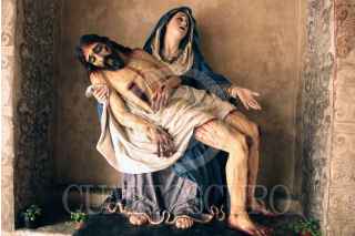 CUERNAVACA, MORELOS, 28JUNIO2022.- Escultura de la Pasión de Cristo en uno de los patios de la Catedral de la capital. FOTO: MARGARITO PÉREZ RETANA / CUARTOSCURO.COM