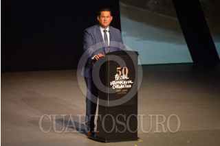 GUANAJUATO, GUANAJUATO, 28JUNIO2022.- Alejandra Frausto, secretaria de Cultura Federal; Diego Sinhue Rodríguez, gobernador de Guanajuato; Luis Felipe Guerrero Agripino, rector de la Universidad de Guanajuato; Alejandro Navarro, presidente municipal de Guanajuato; Claudia Curiel de Icaza, secretaria de Cultura de la Ciudad de México, y Mariana Aymerich Ordoñez, directora general del Festival Internacional Cervantino (FIC) encabezaron en el Auditorio del Estado la presentación de la edición 50 del FIC la cual tendrá como invitado internacional a la República de Corea, y la Ciudad de México como nacional. FOTO: MARIO JASSO/CUARTOSCURO.COM