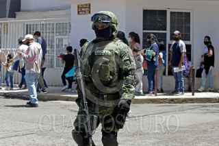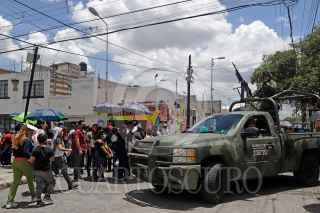 PUEBLA, PUEBLA, 28JUNIO2022.- Balacera deja como saldo cuatro heridos, entre ellos dos niños, al ocurrir en las inmediaciones del Centro de Salud de la colonia Francisco I. Madero, donde se realizaba la jornada de vacunación contra Covid19 para menores de 5 a 11 años. El lugar fue resguardado por soldados y Guardia Nacional con camiones artillados. FOTO: MIREYA NOVO/CUARTOSCURO.COM
