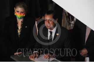 CIUDAD DE MÉXICO, 29JUNIO2022.- En el Senado de la República se colocó una placa en honor a la lucha que ha mantenido la comunidad LGBTTTI para defender sus derechos, el evento fue encabezado por Olga Sánchez Cordero, presidenta de la Mesa Directiva del Senado y Sergio Gutiérrez Luna, presidente de la Mesa Directiva de la Cámara de Diputados. FOTO: DANIEL AUGUSTO /CUARTOSCURO.COM
