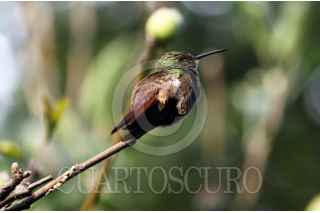 TETELA DEL VOLCÁN, MORELOS, 29JUNIO2022.- Un colibrí de color verde tornasol se mece en la rama de un manzano en un jardín de Tetela del Volcán. Imagen tomada el día de ayer. FOTO: MARGARITO PÉREZ RETANA / CUARTOSCURO.COM