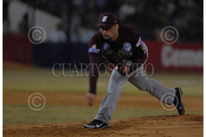 MAZATLÁN, SINALOA 13ENERO2006.- Ayer por la noche en el estadio Teodoro Mariscal se enfrentaron los equipo de beisbol, los Venados de Mazatlán y los Tomateros de Culiacán por el pase a la final de la Liga Mexicana del Pacifico. Los guindas se impusieron en el primero de la serie. Jorge Campillo, lanzador de los Tomateros de Culiacán. FOTO: EL DEBATE DE MAZATLÁN