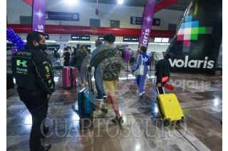 TOLUCA, ESTADO DE MÉXICO, 01JULIO2022.- Desde muy temprana hora dieron inicio las operaciones en el Aeropuerto Internacional de Toluca “Lic. Adolfo López Mateos” en donde fueron retomados los vuelos comerciales, la aerolínea Volaris reanudó sus vuelos con 14 operaciones diarias en el AIT. Los pasajeros se mostraron contentos por la reapertura de los vuelos comerciales ya que su traslado no es tan largo. Los destinos que ofrecen son Cancún, Guadalajara, Huatulco, Los Cabos, Tijuana y Puerto Vallarta. FOTO: CRISANTA ESPINOSA AGUILAR /CUARTOSCURO.COM