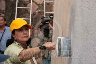 ZACATECAS, ZACATECAS 13ENERO2007.- La Gobernadora Amalia Garcia dio inicio a la primera jornada del año del Programa de Dignificación de Escuelas, con el cual se han beneficiado ya ocho mil alumnos de 301 planteles en todo el estado. FOTO: GUILLERMO MORENO/CUARTOSCURO.COM