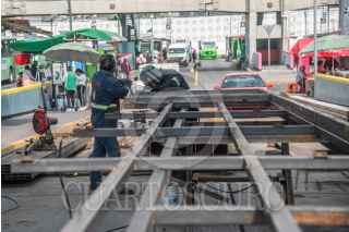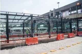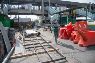 CIUDAD DE MÉXICO, 02JULIO2022.- Continúan los trabajos de instalación de estaciones provisionales en el Centro de Transferencia Modal (Cetram) Pantitlán previo al cierre en el tramo del metro que va hasta la estación Salto del Agua. Dicha ampliación contará con la zona abordaje de autobuses RTP, y ampliación de zona para Metrobús y Trolebús. FOTO: MARIO JASSO/CUARTOSCURO.COM