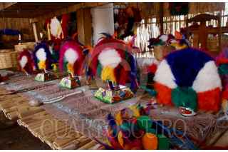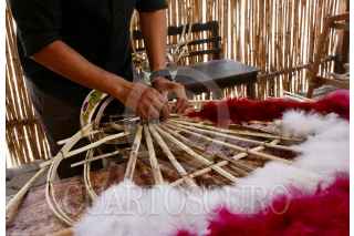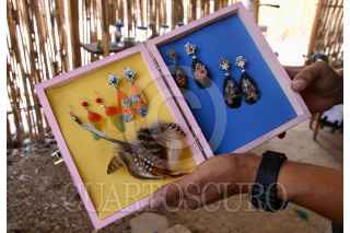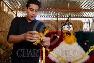 VILLA DE ZAACHILA, OAXACA, 03JULIO2022.- En la Villa de Zaachila, comunidad zapoteca conurbada a la ciudad de Oaxaca, Iván Cruz López, originario de esta población, creo el taller Buidoo Xtera Duub (“La espiritualidad de la pluma” en zapoteco), dedicado al arte plumario, en donde se elaboran principalmente penachos que se utilizan en la Danza de la Pluma, una de las danzas más representativas en la Guelaguetza. El profesor por formación académica, se dedicó a investigar la técnica del entorchado de pluma y todo lo referente al arte plumario que alguna vez existió en la comunidad y que dejo de practicarse por más de 40 años. De manera autodidacta empezó la elaboración de los penachos que puede tardar hasta 6 meses y cuyo proceso toma en cuenta las condiciones meteorológicas. Para la elaboración del penacho se necesita carrizo deshidratado, hilo encerado y pluma teñida, todos materiales elaborados de forma artesanal. La pluma se teje manualmente ocupando técnicas como pluma de flor y encorchado. En el taller además de los penachos se elaboran aretes, collares y otros objetos que destacan la belleza del arte plumario. Tras dos años de suspensión debido a la pandemia por covid-19, este año vuelve la Guelaguetza y con ella la Danza de la Pluma que es originaria de los Valles Centrales y una evocación a la conquista. FOTO: CAROLINA JIMÉNEZ/CUARTOSCURO.COM