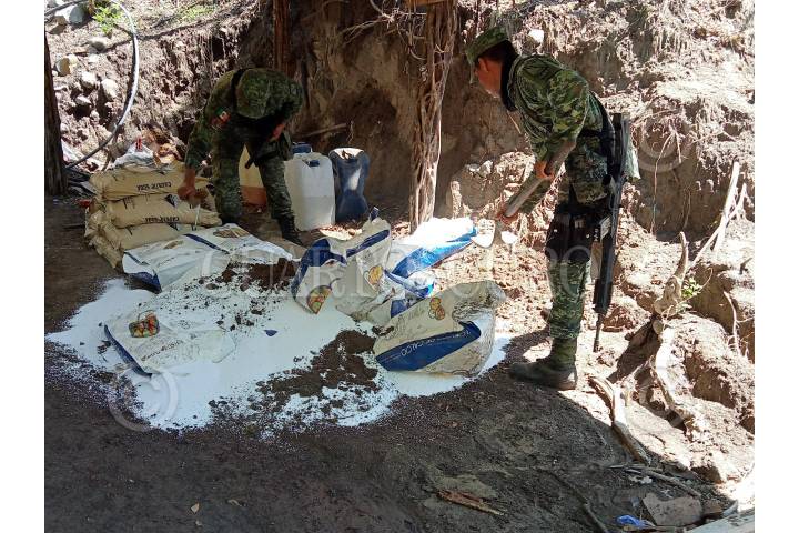 CULIACÁN, SINALOA, 03JULIO2022.- El Ejército Mexicano realizó el aseguramiento de seis laboratorios clandestinos, para la elaboración de droga sintética en el estado de Sinaloa: el primero fue en el poblado Los Cedritos; el segundo y el tercero en el poblado de la Estancia de los García; el cuarto en el poblado de Las Juntas; el quinto en el poblado de Calafato o Ipucha, y el último en el poblado de Alcoyonqui. FOTO: SEDENA/CUARTOSCURO.COM
