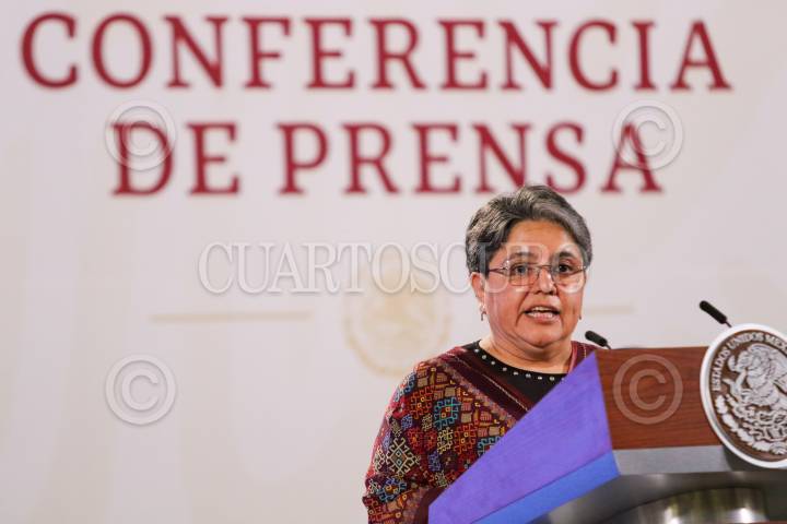 CIUDAD DE MÉXICO, 04JULIO2022.- Andrés Manuel López Obrador, Presidente de México; Ricardo Sheffield Padilla, director de Profeco; Raquel Buenrostro, Jefa del SAT, y Antonio Martínez Dagnino, administrador general de grandes contribuyentes del SAT, durante la conferencia de prensa en Palacio Nacional. FOTO: MOISÉS PABLO/CUARTOSCURO.COM