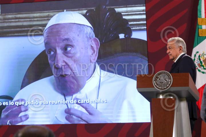CIUDAD DE MÉXICO, 04JULIO2022.- Andrés Manuel López Obrador, Presidente de México; Ricardo Sheffield Padilla, director de Profeco; Raquel Buenrostro, Jefa del SAT, y Antonio Martínez Dagnino, administrador general de grandes contribuyentes del SAT, durante la conferencia de prensa en Palacio Nacional. FOTO: MOISÉS PABLO/CUARTOSCURO.COM