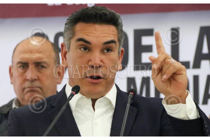CIUDAD DE MÉXICO. 04JULIO2022.- Alejandro Moreno Cárdenas, dirigente del PRI nacional, en conferencia de prensa está tarde en la sede del tricolor. Lo acompañó además Rubén Moreira, coordinador del PRI en la Cámara de Diputados. FOTO: VICTORIA VALTIERRA/CUARTOSCURO.COM