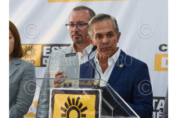 TOLUCA, ESTADO DE MÉXICO, 04JULIO2022.- Agustín Barrera Soriano, presidente estatal del PRD acompañado por el Senador Miguel Ángel Mancera Mancera y los diputados Omar Ortega Álvarez, Viridiana Fuentes, en conferencia de prensa en donde pidieron reglamentar los gobiernos de Coalición en el Estado de México, así podrían ir en alianza con PRI y PAN con miras a las elecciones de gobernador de 2023. En su intervención el Senador Miguel Ángel Mancera ve con grandes posibilidades al diputado Omar Ortega como candidato para la gubernatura del Edoméx. FOTO: CRISANTA ESPINOSA AGUILAR /CUARTOSCURO.COM