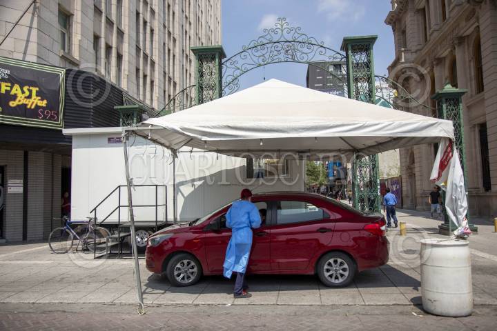 MONTERREY, NUEVO LEÓN, 04JULIO2022.- Ante el incremento de casos por Covid-19, las filas de Drive-Thru para pruebas Covid aumentaron durante la última semana en el centro de Monterrey. FOTO: CUARTOSCURO.COM