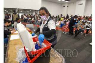 TOLUCA, ESTADO DE MÉXICO, 05JULIO2022.- El municipio de Toluca forma parte de los 47 municipios mexiquenses que iniciaron la vacunación contra COVID-19 para menores de 10 y 11 años de edad, uno de los Centros de Vacunación es el Centro de Convenciones del Edoméx, en donde se dieron cita padres de familia desde temprana hora para que sus hijos pudieran ser inoculados. FOTO: CRISANTA ESPINOSA AGUILAR /CUARTOSCURO.COM
