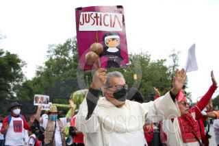 CIUDAD DE MÉXICO, 05JULIO2022.- Madres y padres de personas desaparecidas, acompañadas de sacerdotes realizaron una peregrinación por la Vida, la Paz y contra la Violencia, en demanda de un alto de las desapariciones de personas, los asesinatos de los sacerdotes jesuitas asesinados en Chihuahua, las agresiones a migrantes y la violencia que se vive en México. La protesta inició en la Estela de Luz y terminó en la Glorieta del Ahuehuete. FOTO: GRACIELA LÓPEZ /CUARTOSCURO.COM