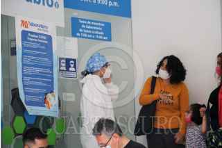 CIUDAD DE MÉXICO, 05JULIO2022.- Capitalinos realizaron filas para realizarse pruebas de antígeno para detectar Covid-19 en Farmacias San Pablo del Centro Histórico. FOTO: GRACIELA LÓPEZ /CUARTOSCURO.COM