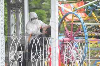 CHILPANCINGO, GUERRERO, 05JULIO2022.- En medio de la crisis que está generando la quita ola de contagios de Covid, en todo el estado de Guerrero y las recomendaciones que han realizado las autoridades sanitarias para reforzar medidas de sanidad, el gobierno de Chilpancingo autorizó nuevamente la instalación de Juegos Mecánicos, que en el pasado en el mes de abril usuarios de redes sociales se los bautizaron como "Otilandia" en las inmediaciones de la Alameda central ‘Francisco Granados Maldonado’. La imprudencia de permitir la instalación de estos juegos se convirtió en un riesgo de salud pública, pues en ellos se sientan las personas que acuden por la mañana a realizarse pruebas covid en el zócalo de este espacio, y por la tarde ahí mismo se sentarán los niños para disfrutar del juego mecánico. Siendo que, al retirarse el modulo de pruebas Covid, solo se sanitiza el área donde se realizan estas pruebas, es decir, solo el quiosco es desinfectado, mientras que el área de juegos queda sin ser limpiada. FOTO: DASSAEV TÉLLEZ ADAME/CUARTOSCURO.COM