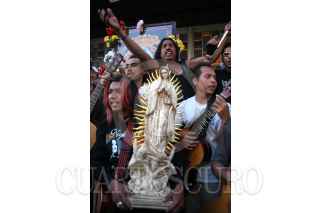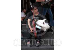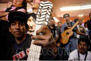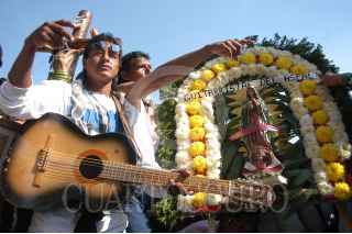 MÉXICO D.F. 14ENERO2007.- Una mujer con una guitarra, descansa en los escalones a la entrada de la Basílica de Guadalupe, después de realizara la peregrinación con los guitarristas urbanos FOTO: GUILLERMO PEREA /CUARTOSCURO.COM