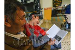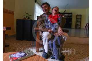 TOLUCA, ESTADO DE MÉXICO, 06JULIO2022.- Raúl Díaz Fierro tiene a cargo a su Nieto Evan, un pequeño de 10 años de edad que presenta parálisis cerebral infantil y cuadriplejia, él y su esposa se han echo cargo de Evancito y para poder solventar los gastos diarios tienen la venta de tacos y pambazos caseros, pero ante la inquietud de querer mostrar parte de las vivencias que tienen Don Raúl y Evancito surge la idea de escribir un libro titulado “Evancito y el Abuelo” en donde narra el amor que siente por su nieto, un niño que le robó el corazón desde que nació, entre sus aventuras narra cómo conocieron al papa Francisco el 13 febrero del 2016, con este libro busca solventar parte de los gastos que de forma diaria salen para su educación y tratamiento. FOTO: CRISANTA ESPINOSA AGUILAR / CUARTOSCURO.COM