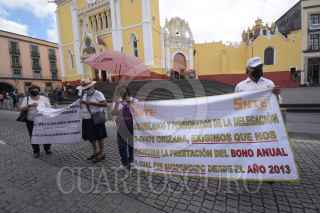 XALAPA, VERACRUZ, 06JULIO2022.- .Jubilados y pensionados del ISSSTE se manifestaron y cerraron el centro de la capital, para exigir al gobernador, Cuitláhuac García, destrabar al pago de beneficios que les corresponden por ley y que no les han entregado. FOTO: YERANIA ROLÓN/CUARTOSCURO.COM